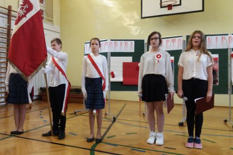 Wysłuchali również krótkiego apelu, który rozpoczął się od wprowadzenia pocztu sztandarowego i odśpiewania hymnu narodowego i szkolnego, a następnie uczniowie klasy VII przedstawili program artystyczny o patriotycznym charakterze. Treści przedstawione w trakcie apelu przypomniały uczniom, że 11 listopada 1918 roku był pierwszym dniem odzyskania przez Polskę niepodległości po 123 latach niewoli i nieobecności na mapach Europy.