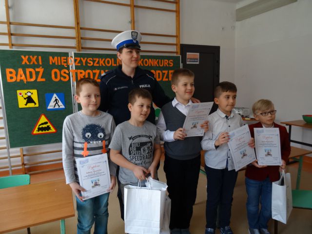 W dniu 17.05.2019r. (piątek) w naszej szkole odbył się XXI Międzyszkolny Konkurs o Ruchu Drogowym pod hasłem „Bądź ostrożny na drodze” dla uczniów klas II szkół podstawowych. Tradycyjnie przebieg konkursu miał charakter zabawowy: rozwiązywanie rebusów, krzyżówek i zagadek. Do udziału w nim zgłosiło się 5 kieleckich szkół: SP 18, SP 19, SP 25, SP 27, SP 39. Najlepszą znajomością znaków drogowych i wiedzą o przepisach ruchu drogowego wykazał się: Tomasz Pułka uczeń Szkoły Podstawowej nr 25. Naszą szkołę reprezentował Igor Matyjasek, uczeń klasy II c, który zajął III miejsce. Nagrody dla zwycięzców i wszystkich uczestników konkursu ufundowali: WORD w Kielcach i Komenda Miejska Policji w Kielcach – wydz. Ruchu Drogowego.