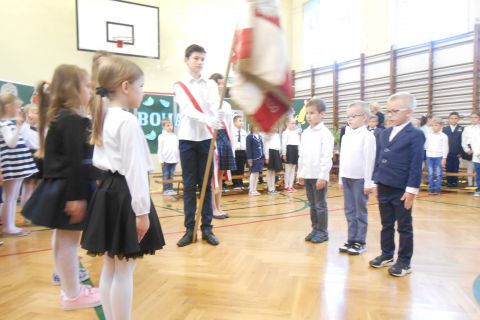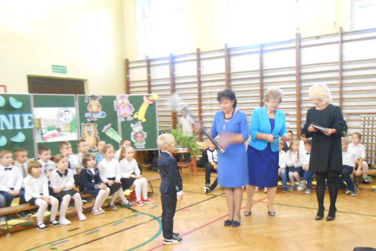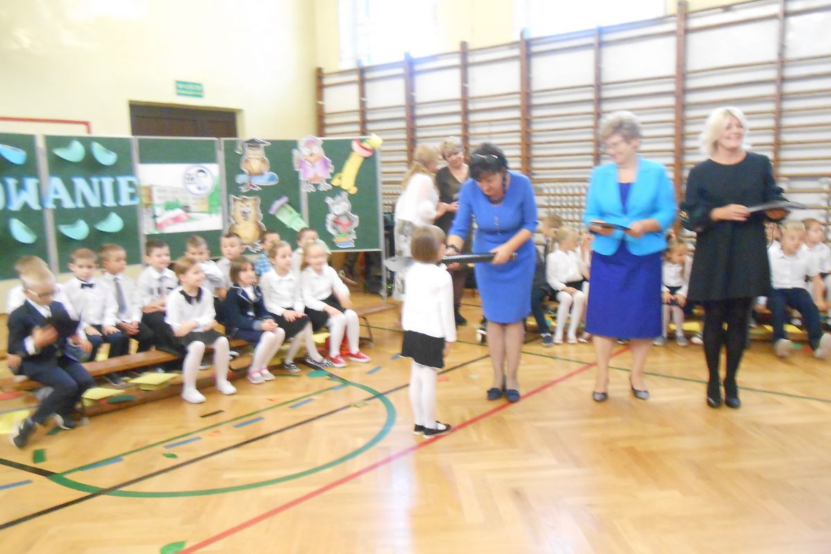 Dzieci w obecności dyrekcji szkoły, wychowawców oraz rodziców, z wielkim przejęciem powtarzali słowa przysięgi, ślubując na sztandar szkoły być dobrym uczniem i Polakiem, dbać o dobre imię szkoły, być dobrym kolegą, a swym zachowaniem i nauką sprawiać radość rodzicom i nauczycielom. Na zakończenie uroczystości każde dziecko otrzymało pamiątkowy dyplom, legitymację uczniowską oraz drobne upominki. Wszystkim pierwszoklasistom życzymy sukcesów w nauce i jak najlepszych ocen na pierwszym szkolnym świadectwie.