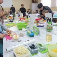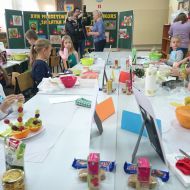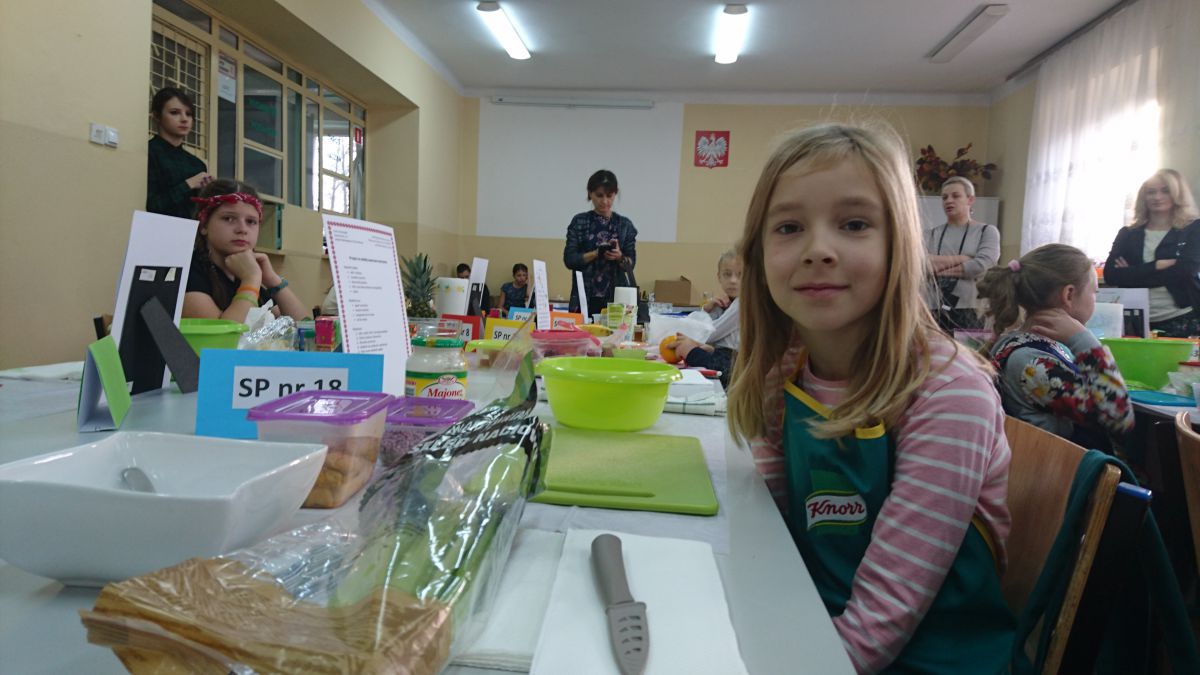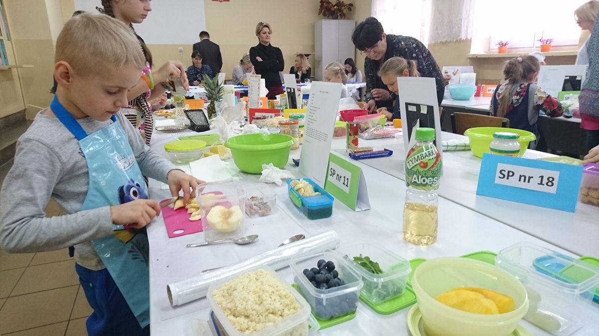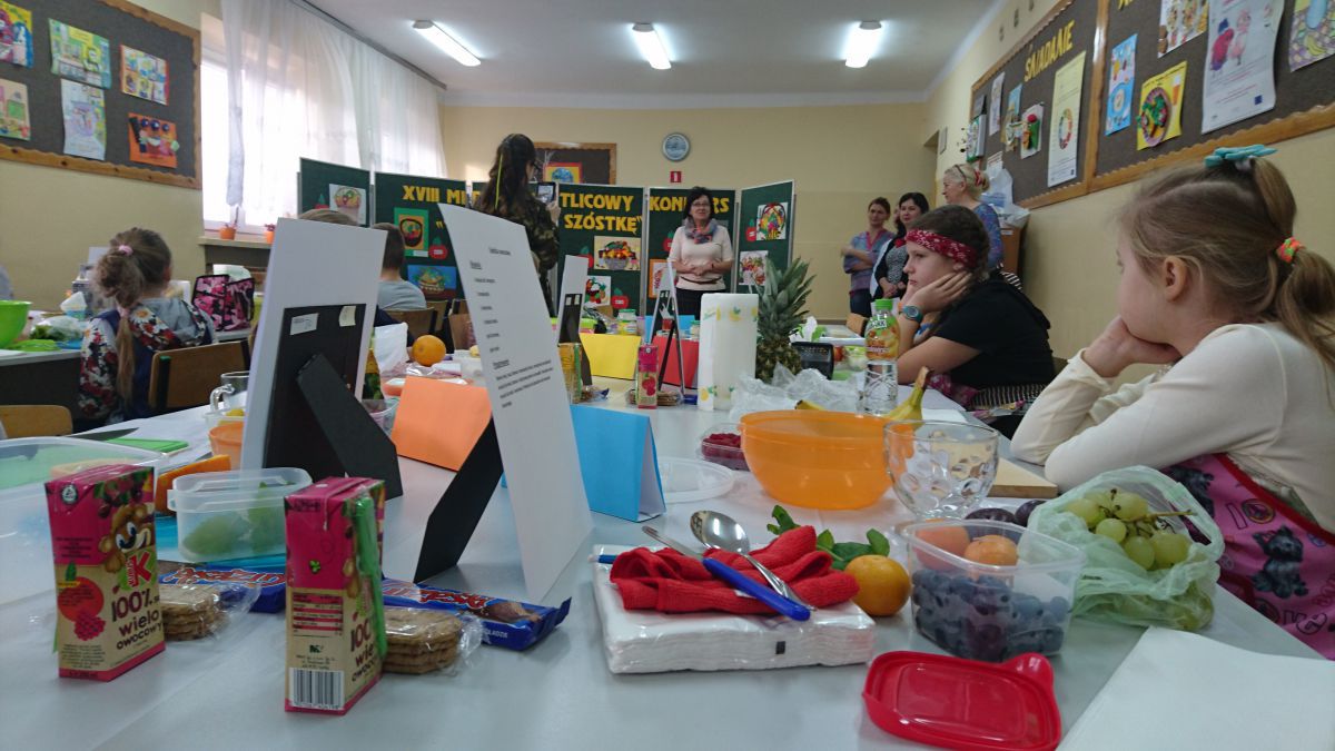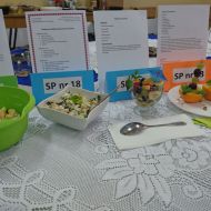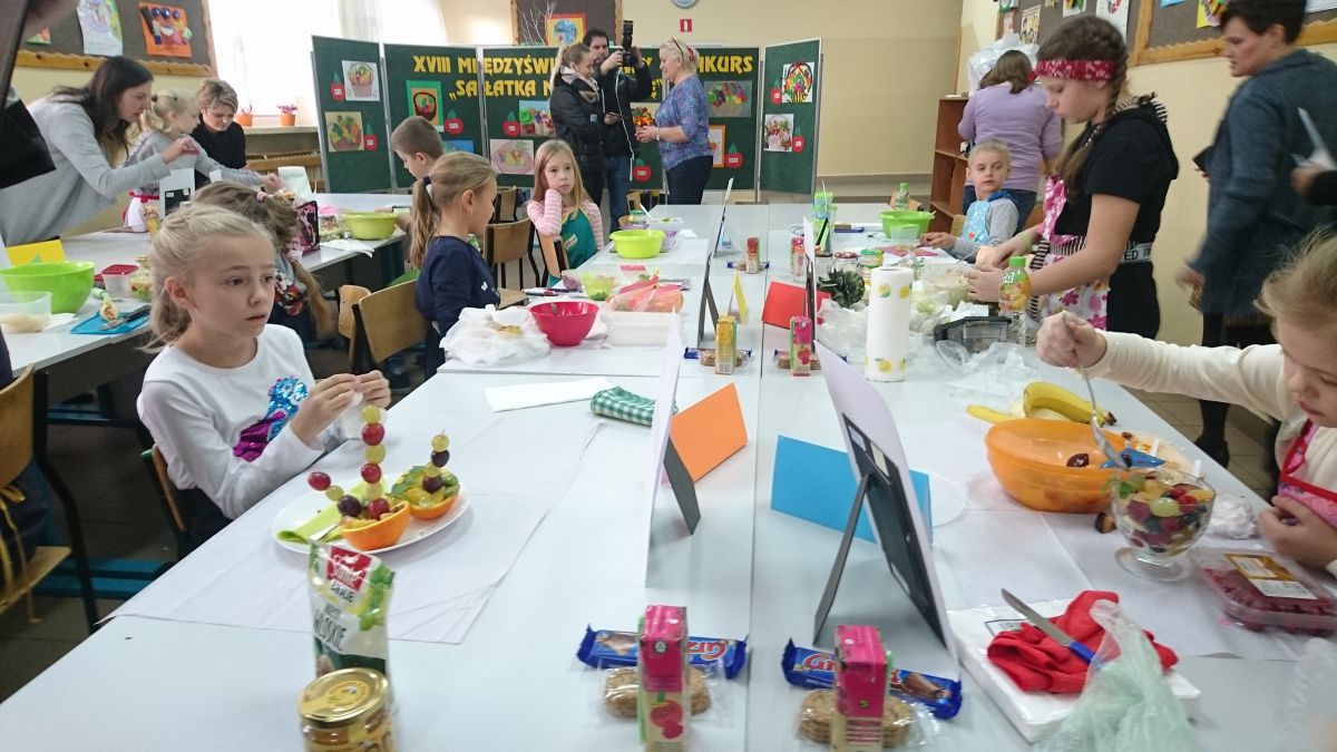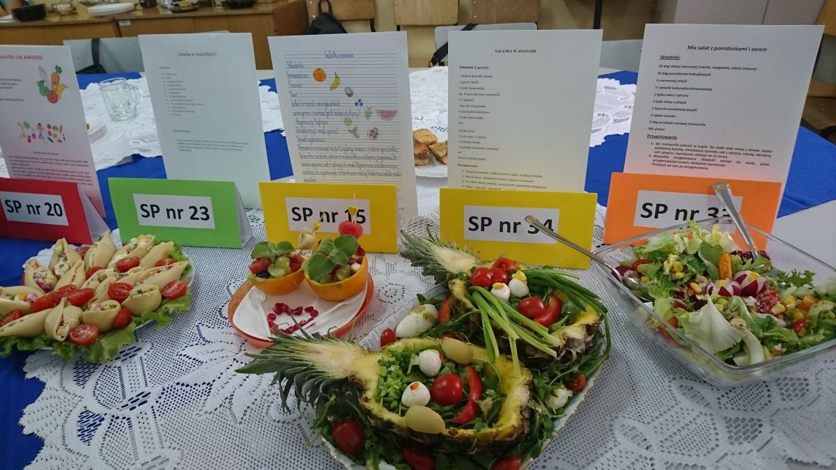 W konkursie wzięli udział uczniowie z dwunastu kieleckich szkół podstawowych. Pierwszy jego etap polegał na wykonaniu prac plastyczno-technicznych pod tytułem „Kosz pełen owoców i warzyw”. Wszyscy uczestnicy bardzo przyłożyli się do ich wykonania. Powstały piękne prace, starannie wykonane różnymi technikami. W drugim etapie uczniowie zostali zaproszeni do naszej szkoły. Tym razem ich zadaniem było wykazanie się umiejętnościami praktycznymi, a dokładniej – kulinarnymi. Dzieci samodzielnie wykonały „Sałatkę na szóstkę”. Uczniowie z prawdziwym zacięciem, godnym profesjonalnych kucharzy, zmierzyli się z tym zadaniem. W skupieniu kroili warzywa i owoce, a następnie z wielką precyzją układali z nich różne kompozycje. Powstawały nie tylko klasyczne sałatki w miseczkach, lecz także w formie żaglówek, zabawnych postaci i oryginalnie ułożone w wydrążonych ananasach i makaronowych muszelkach. Zapach i ich wygląd wprost zachęcały do konsumpcji, a po spróbowaniu każdej z nich, okazały się przepyszne.