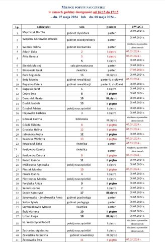 Harmonogram dyżuru nauczycieli w ramach godziny dostępności.
