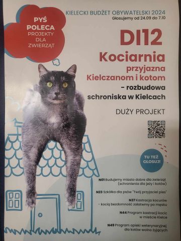 W związku z wieloletnią współpracą z Kieleckim Schroniskiem dla zwierząt w Dyminach zachęcamy do oddania głosu w Budżecie Obywatelskim na rozbudowę schroniska.