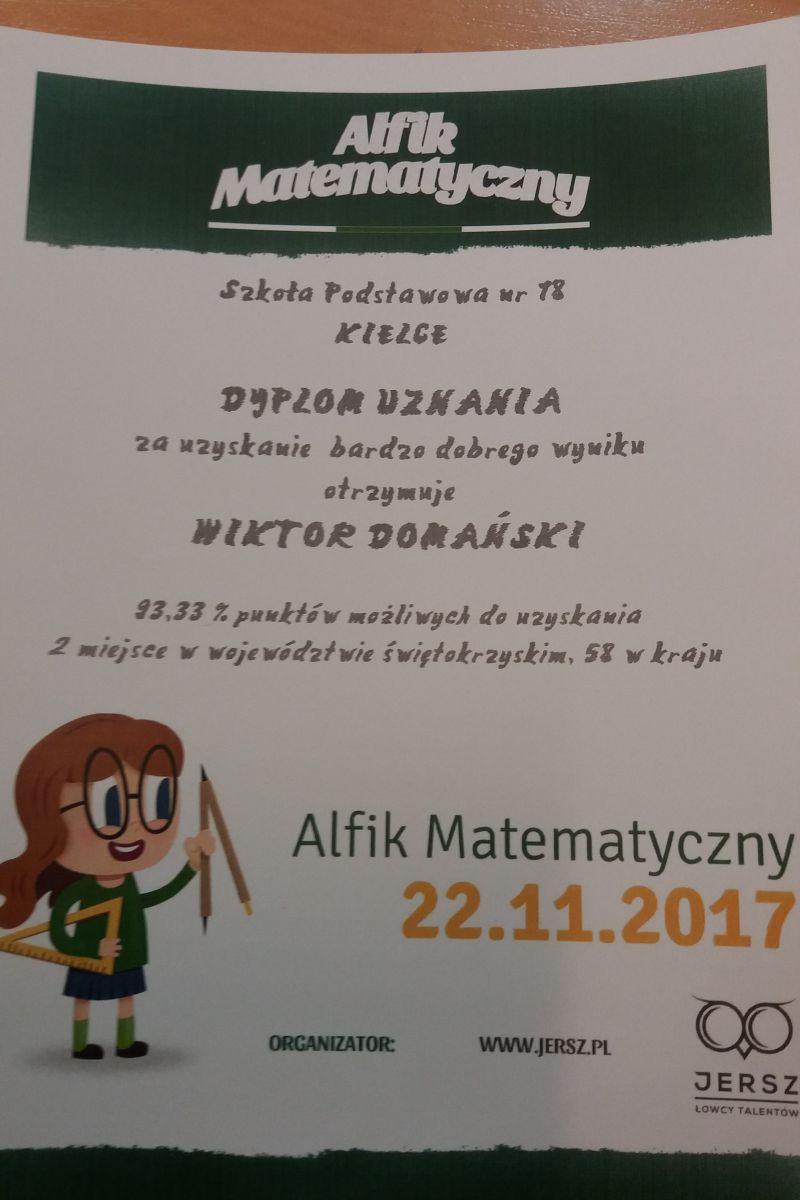 - Wiktor Domański, uczeń klasy III a - 2 miejsce w województwie i 58 w kraju.