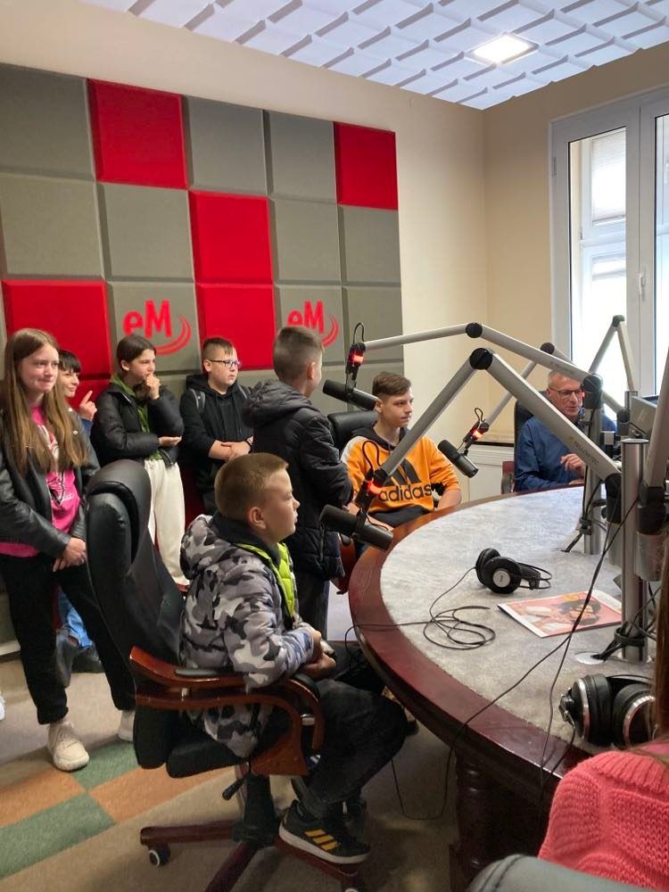 W ramach działań innowacji pedagogicznej "Włącz się! Razem pokonamy trudności" uczniowie ze specjalnymi potrzebnymi edukacyjnymi i ich rówieśnicy, również z Ukrainy, ze Szkoły Podstawowej nr 18 im. Zbigniewa Kruszelnickiego „Wilka” w Kielcach odwiedziły siedzibę Radia EM