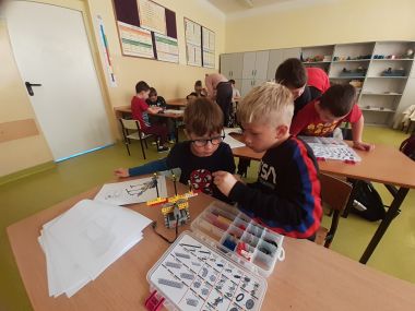 Uczniowie klasy 3a na zajęciach z robotyki