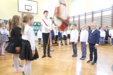 Dnia 26 października 2017 r. odbyła się uroczystość ślubowania uczniów klas pierwszych. Był to bardzo waży dzień dla naszych pierwszoklasistów oraz ich rodziców. Zanim pierwszoklasiści zostali przyjęci do grona społeczności szkolnej musieli przedstawić to, czego już się w szkole nauczyli. Odświętnie ubrani i bardzo przejęci wspaniale zaprezentowali swoje umiejętności recytatorskie, wokalne i sportowe. Ważnym momentem uroczystości było ślubowanie pierwszoklasistów i pasowanie ich na uczniów...