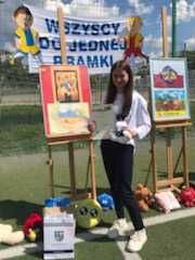 Uczennica klasy 5 a Weronika Rudenko zdobyła I miejsce w konkursie "Podaj rękę Ukrainie" zorganizowanym przez Wydział Prewencji Komendy Wojewódzkiej Policji w Kielcach, Świętokrzyski Urząd Wojewódzki oraz Kuratorium Oświaty w Kielcach. Uroczyste wręczenie nagród odbyło się 31 maja 2022 r. na stadionie Korony.