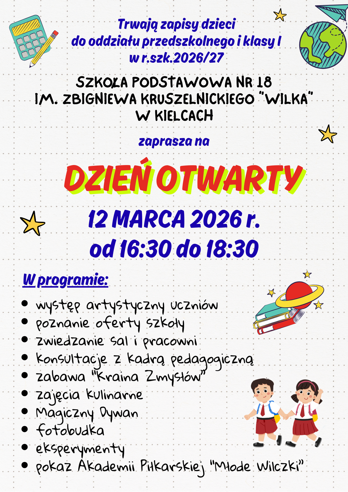 Informujemy rodziców i opiekunów prawnych o zasadach oraz harmonogramie rekrutacji do publicznych przedszkoli oraz oddziałów przedszkolnych w publicznych szkołach podstawowych na terenie Miasta Kielce na rok szkolny 2026/2027.