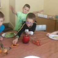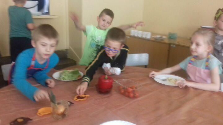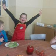 Drużyna klasy 2 a wyruszyła w poszukiwaniu kolejnej przygody kulinarnej. Uczniowie wykonali doświadczenie poznając właściwości glutenu. Skomponowali pełnowartościowy posiłek z wykorzystaniem produktów zbożowych firmy Kupiec. Wszystkim bardzo smakowała kaszka kuskus oraz własnoręcznie wykonane sałatki: Samo zdrowie, Kwiatowa – oliwkowa, Wiosenna, Jarzynowa i inne. To było dzieło sztuki kulinarnej oraz artystycznej.