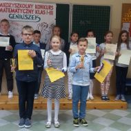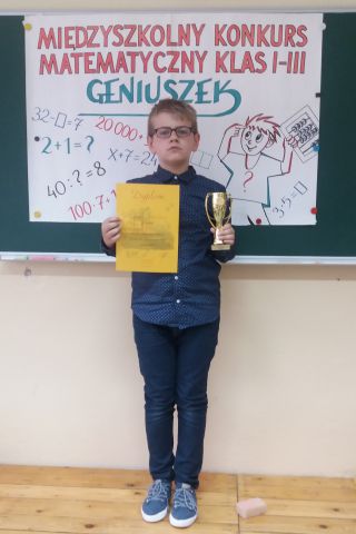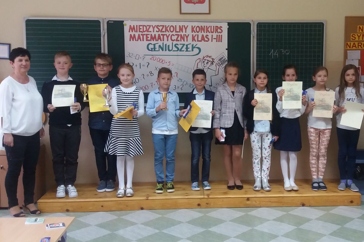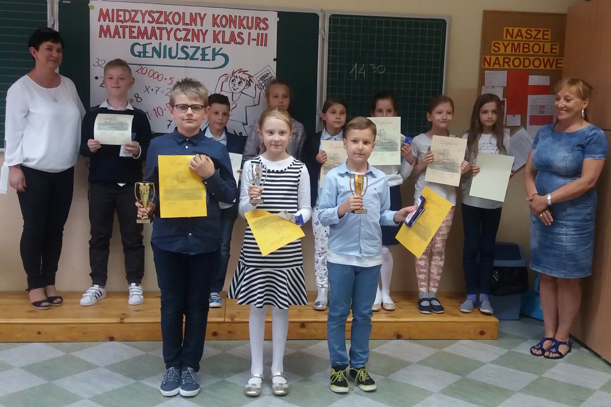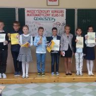 Dnia 16 maja 2018 r. laureaci szkolnego konkursu matematycznego, uczniowie klasy 3 a: Wiktor Domański i Mateusz Jędrzejczyk reprezentowali naszą szkołę w XVI Międzyszkolnym Konkursie Matematycznym "Geniuszek", organizowanym przez Szkołę Podstawową nr 20 im. Natalii Machałowej w Kielcach. Zwycięzcą konkursu został nasz uczeń Wiktor Domański. Obu chłopcom gratulujemy wysokich osiągnięć w nauce i życzymy dalszych sukcesów.