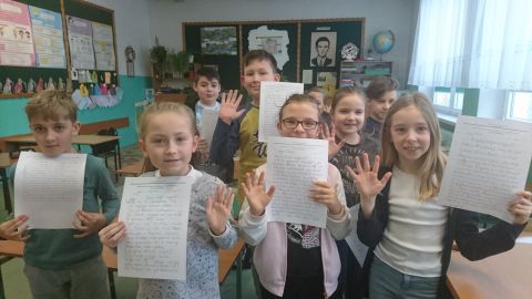 W Szkolnym Konkursie Ortograficznym wzięli udział uczniowie klas trzecich: Emma Podsiadło, Maria Kopacz, Wojciech Czerwiński (kl. 3a), Julia Krzywicka, Piotr Radecki, Krystian Perczak (kl. 3b), Nicola Ozga, Maja Szwedek, Jakub Chwastek (kl. 3c). Konkurs przygotowała i przeprowadziła pani Tamara Machnik.