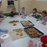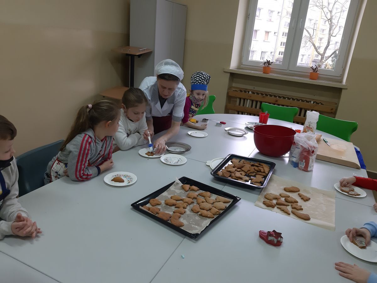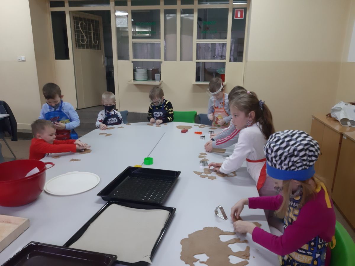 Grudzień to czas pieczenia świątecznych pierników. Dzieci z oddziału przedszkolnego, pod opieką wychowawczyni pani Wioletty Kaweckiej i szefowej szkolnej kuchni - pani Uli, postanowiły wnieść do szkoły trochę magicznego zapachu świąt.