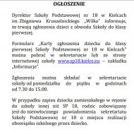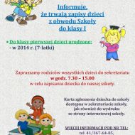 25.02.2021 r. Zapisy uczniów do klasy pierwszej
