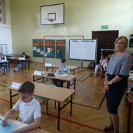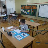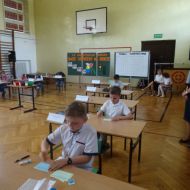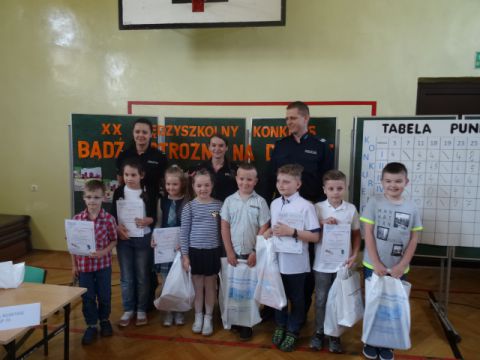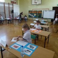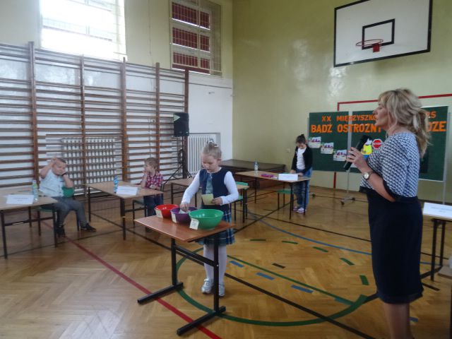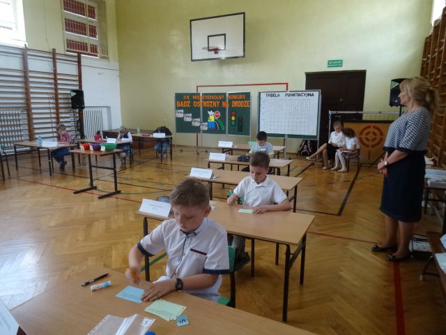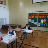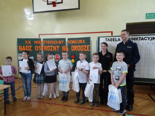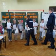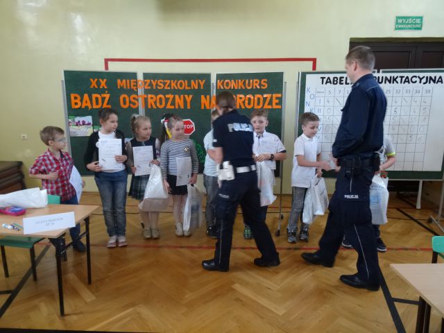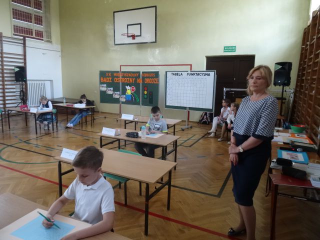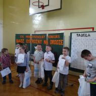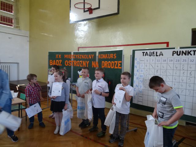 o Ruchu Drogowym pod hasłem „ Bądź ostrożny na drodze” dla uczniów klas II szkół podstawowych. Przebieg konkursu miał charakter zabawowy: rozwiązywanie rebusów, krzyżówek, wykreślanek i zagadek. Do udziału w nim zgłosiło się 8 kieleckich  szkół: SP 5, SP 11, SP 18, SP 23, SP 25, SP 32, SP 34, SP 39. Najlepszą znajomością znaków drogowych i wiedzą o przepisach ruchu drogowego wykazali się: Jakub Chudzicki uczeń Szkoły Podstawowej nr 25, Kacper Michalczyk uczeń Szkoły Podstawowej nr 32 i Filip Rachwał uczeń Szkoły Podstawowej nr 11. Nagrody dla zwycięzców i wszystkich uczestników konkursu ufundowali: WORD w Kielcach i Komenda Miejska Policji w Kielcach – wydz. Ruchu Drogowego. Organizatorami konkursu były p. Wioletta Kawecka, p. Magdalena Szyndler – Smołowik, p. Halina Wzorek.