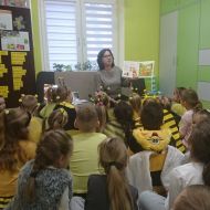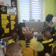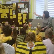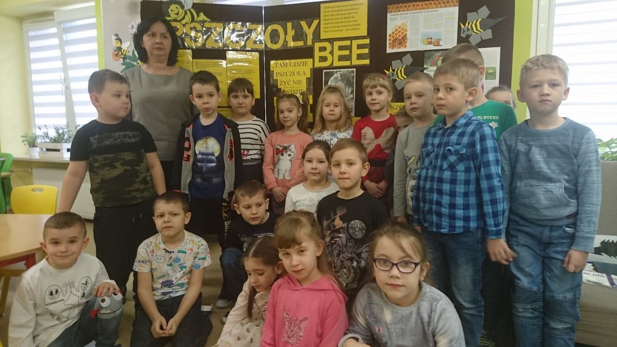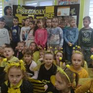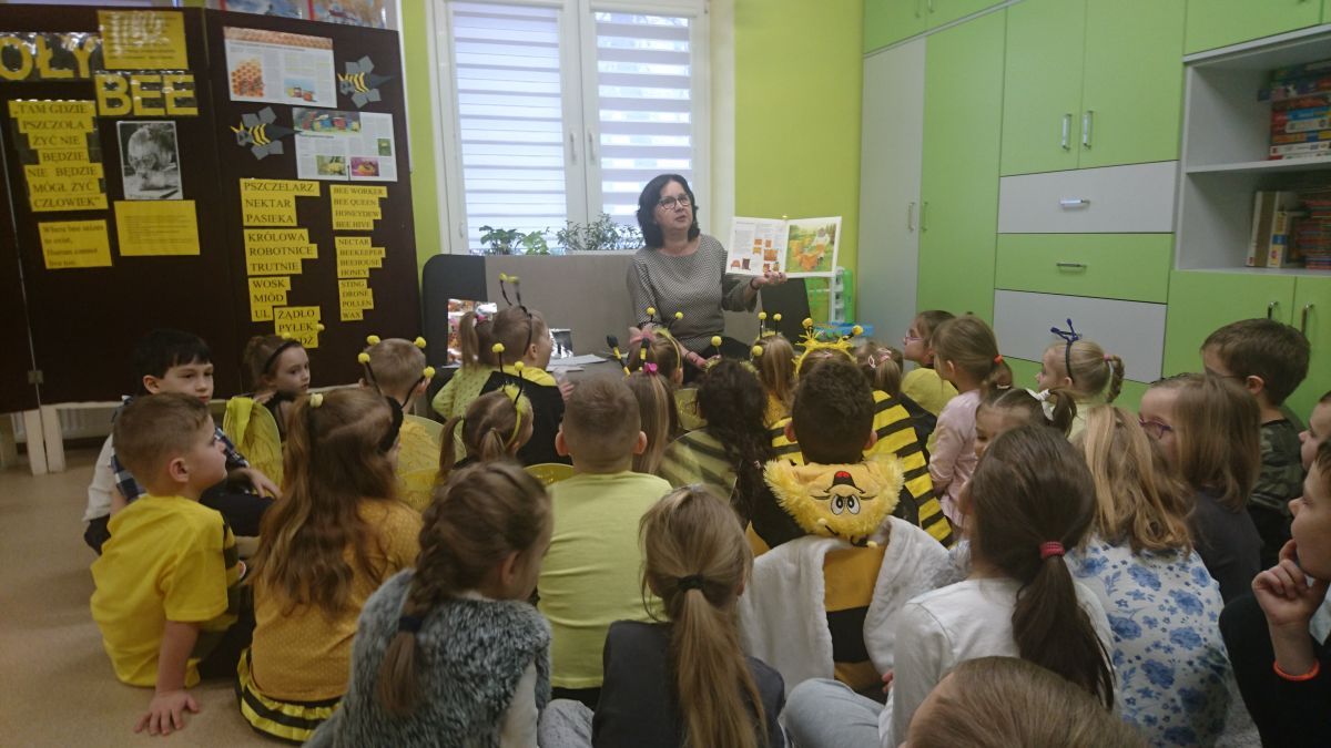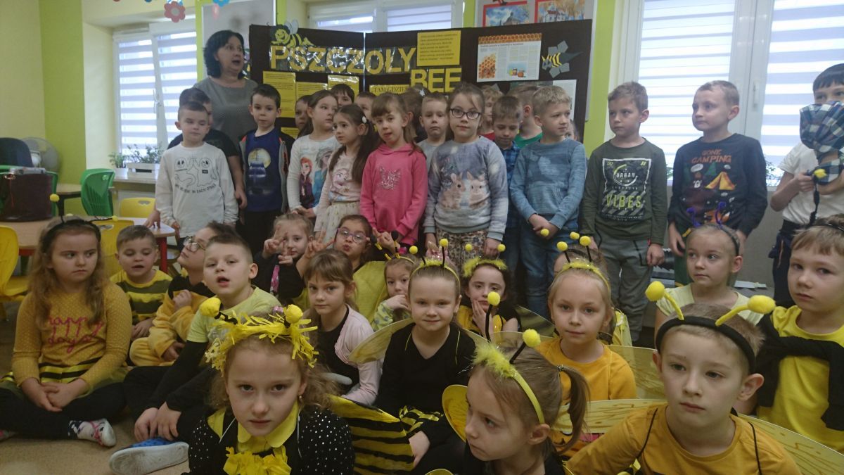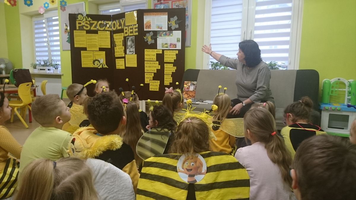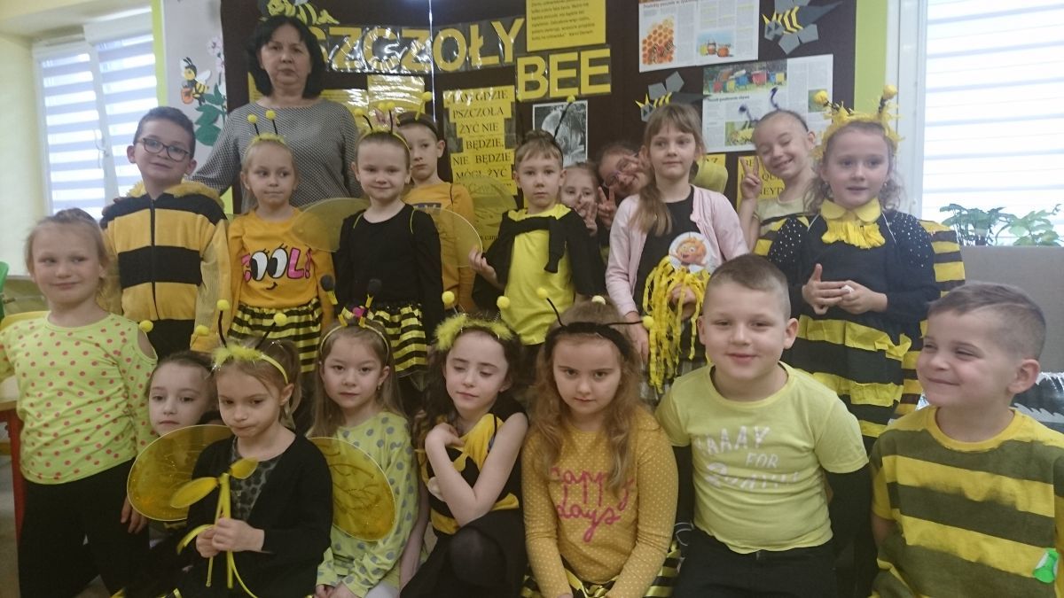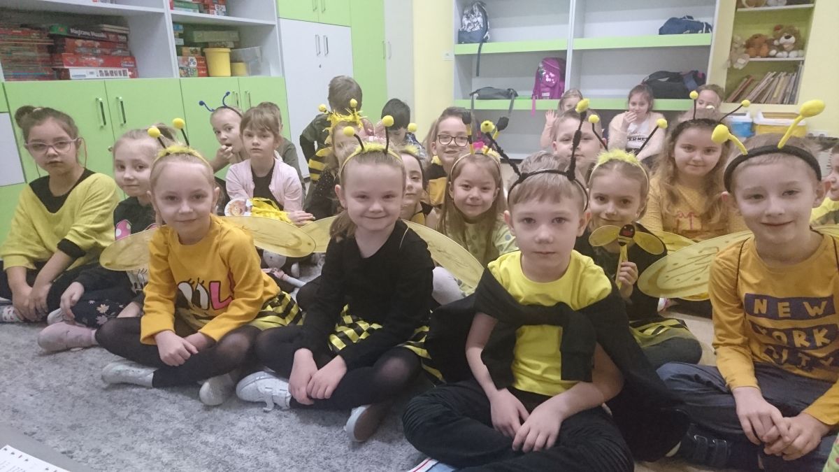 Pani Grażyna Rabiej zaprosiła dzieci z oddziału przedszkolnego oraz uczniów klas 1a i 1b do świetlicy szkolnej na ciekawe zajęcia edukacyjne pod hasłem Dzień Pszczoły. Wszyscy z zainteresowaniem słuchali informacji o życiu i zwyczajach pszczół oraz o ich znaczeniu dla człowieka. Dzieci z „zerówki” wystąpiły w przebraniach pszczółek.