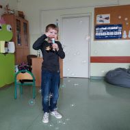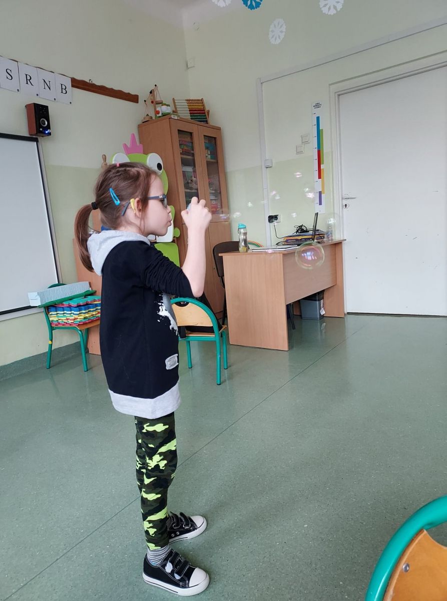 Z okazji tego święta w naszej szkole odbyły się ciekawe zajęcia logopedyczne z przedszkolakami. Dzieci miały okazję poprzez zabawę poćwiczyć aparat mowy. Dużą radość sprawiły ćwiczenia oddechowe - dmuchanie baloników, puszczanie baniek mydlanych - tak ważne w kształtowaniu prawidłowego toru oddechowego oraz usprawniające mięśnie okrężne warg.