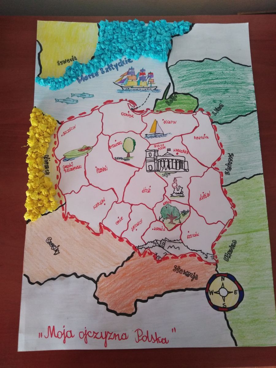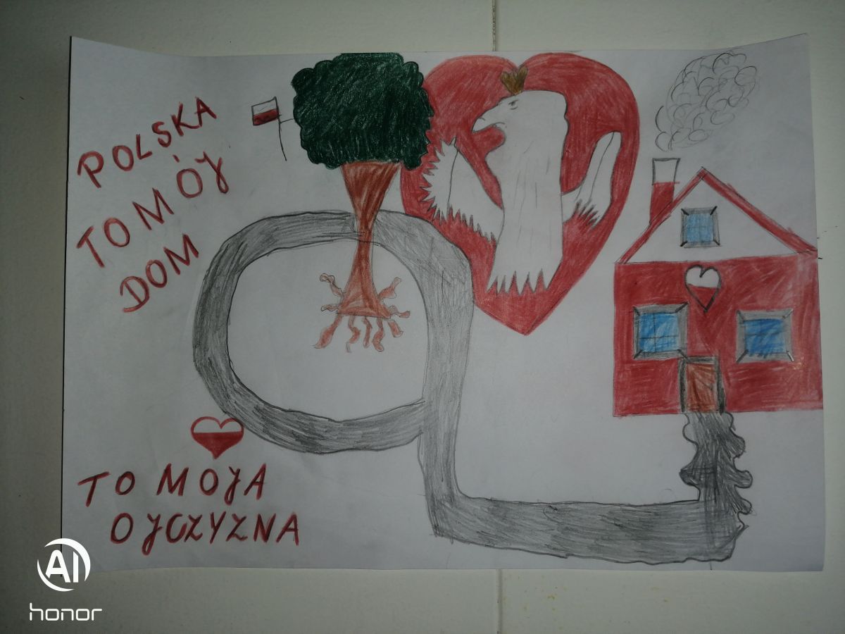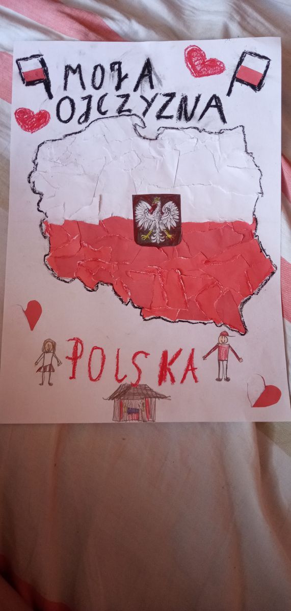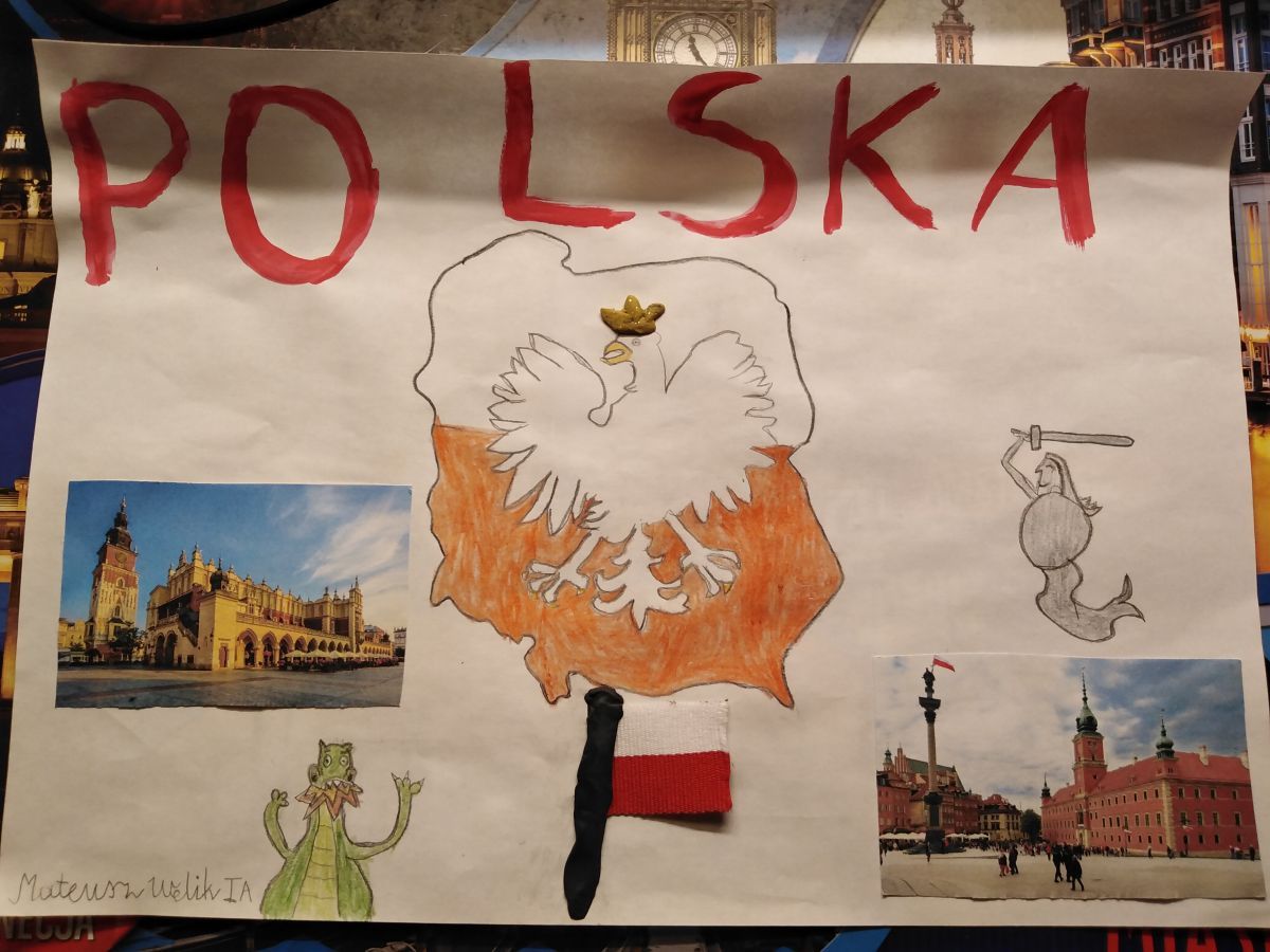 Uczniowie klasy 1 a realizowali w tym tygodniu tematy związane z naszą Ojczyzną Polską. Utrwalili znajomość symboli narodowych, poprzez filmy edukacyjne poznali ciekawe miejsca i zabytki w Polsce, zdobyli podstawy wiedzy na temat Konstytucji 3 Maja, poznali znaczenie słowa „patriota”. Podsumowaniem tych zajęć było przygotowanie przez uczniów prac na temat: „Moja ojczyzna Polska”, wykonanych według własnego pomysłu. Nie wszyscy uczniowie wykonywali prace plastyczne. Niektórzy recytowali wiersze o Ojczyźnie, których nauczyli się na pamięć.
