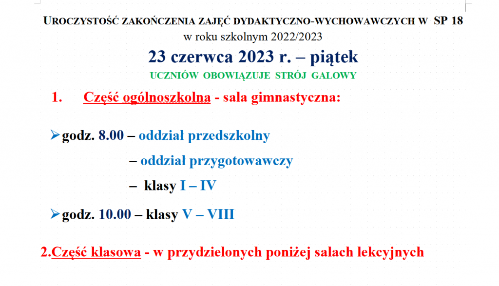 Uroczystość zakończenia zajęć w r. szk. 2022-23