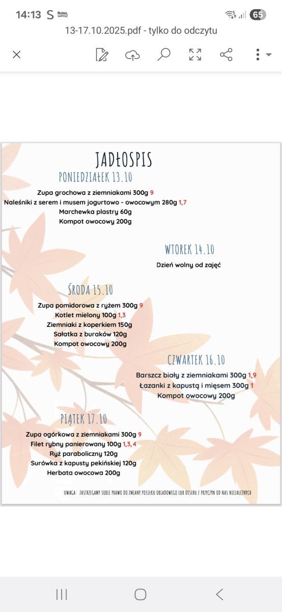 - W szkole wywieszony jest jadłospis tygodniowy, zatwierdzony prze dyrektora szkoły i intendenta.